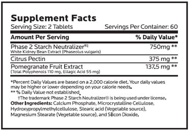Phase 2, a proprietary extract of the bean Phaseolus vulgaris contains phaseolamin, can block the action that breaks down carbohydrates and allows them to be absorbed into your body. 500-1000mgs of this natural extract has been shown to dramatically reduce the absorption of starches thus calories resulting in significantly greater weight loss in numerous studies when compared to placebo.