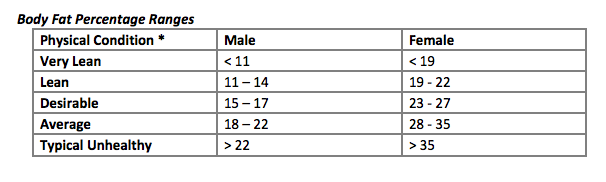 Furthermore you may be classified as overweight based on your height and weight (BMI), thus shown “at risk” for disease, but if you are a muscular exerciser with low body fat, weight means very little by itself to your health. So as long as your body fat is in the healthy range shown below, weight or BMI would generally be a non-factor in defining your health. Additionally only a complete physical examination can determine your overall health. Another tool that may be of interest to you in preserving your health throughout life is waist circumference (waist-to-hip ratio can be a measurement of abdominal fat distribution). This, along with BMI, has been shown to correlate strongly with health risks (e.g. heart and metabolic disease). Click Assessing your Risk <http://www.nhlbi.nih.gov/health/public/heart/obesity/lose_wt/risk.htm> from the National Heart, Lung and Blood Institute for more information. And finally, we always prefer using a body fat measurement for assessing health risk related to weight but it’s not always practical, which is why other measurements are more commonly used.